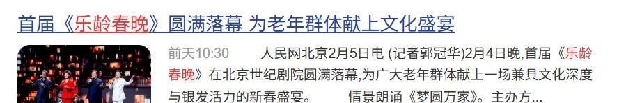 令人惊喜的是,中国教育电视台(CETV)于2026年正式推出首届乐龄春节联欢晚会,以专属舞台致敬银发群体,真正将目光聚焦于中老年观众的精神文化生活。